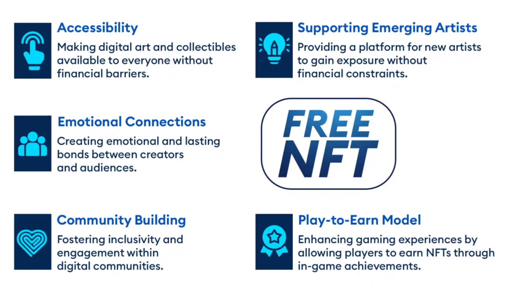 Unlike traditional NFTs, which can be costly, Free NFTs open the doors for everyone to participate in the digital art world. This approach isn’t just about saving money, building community, and fostering emotional connections. Free NFTs allow more people to enjoy and engage with digital creativity, making the experience more prosperous and inclusive.
